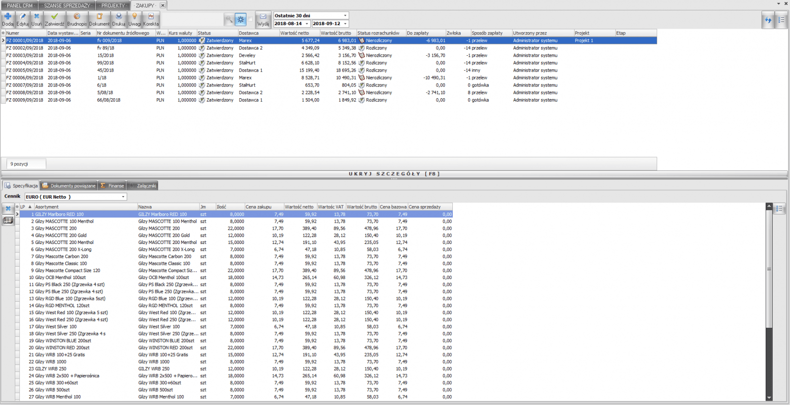 • Ewidencja faktur zakupowych - moduł Modus ERP pozwalający na wprowadzanie faktur zakupowych z możliwością wiązania ich z dokumentami magazynowymi